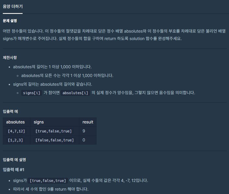 public int solution(int[] absolutes, boolean[] signs) {