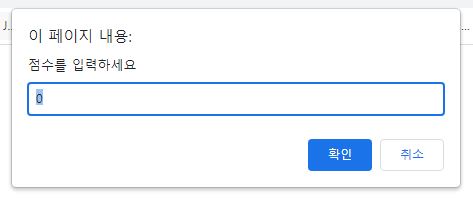 else if(isNaN(score)) { // 텍스트 입력 필드에 숫자가 아닌 것을 입력하고 확인 누름