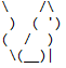 System.out.println("\\ /\\\n ) ( \')\n( / )\n \\(__)|");
